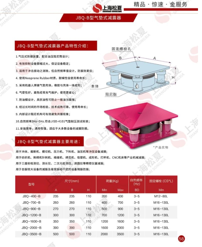 恒盛JBQ-B型液压气垫减震器通过采用低自然频率值的设计,有效地吸收和分散振动,从而提供良好的防振效果。