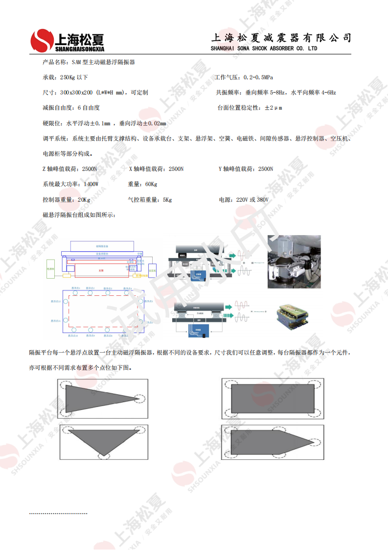 恒盛SAM型主动隔振器(Active Vibration Isolators)是一种利用电子控制系统实时调整以抵消振动的设备。它们通过传感器检测振动,然后由控制器计算出所需的反作用力,并通过执行器施加相反方向的力来抵消振动。由于其复杂性和成本较高,主动隔振器通常被用于那些对振动极其敏感或传统被动隔振方法难以有效处理的关键部位。